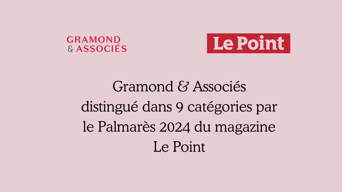 Lire la suiteGramond & Associés est fier d’être distingué par le Palmarès 2024 des meilleurs cabinets d’avocats publié par le magazine Le Point et élaboré en partenariat avec Statista. Cette année encore, notre expertise est récompensée dans les neuf catégories suivantes : ▶️ Fusions & acquisition...