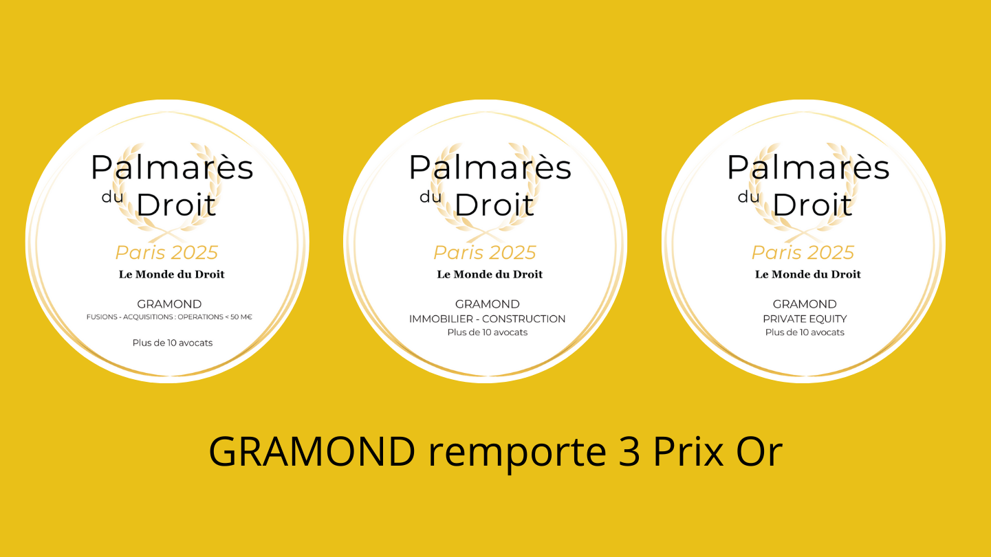 Nous sommes heureux d’annoncer que Gramond a remporté 3 prix Or lors des Palmarès du Droit dans les catégories suivantes : 🏆 Fusion & Acquisition (opérations < 50 M€) 🏆 Immobilier et Construction 🏆 Private Equity Ces distinctions viennent récompenser notre expertise, la rigueur...