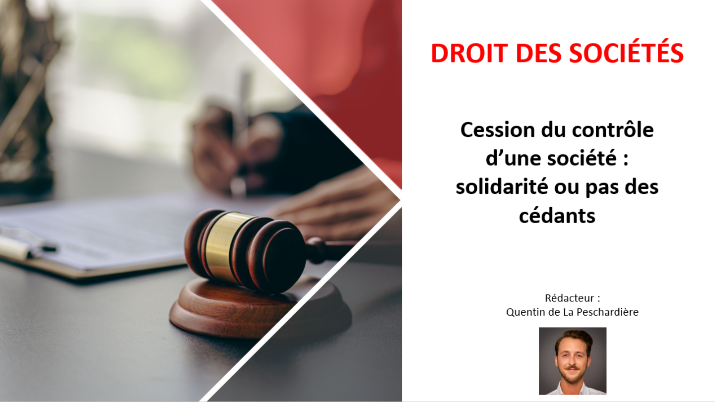 En présence de la cession du contrôle d’une société par quatre associés à deux acquéreurs, si les cédants sont solidaires à l’égard du premier acquéreur,...