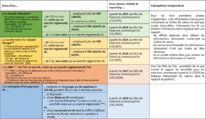 • A compter de 2025, ce nouveau reporting remplacera la déclaration de performance extra-financière, issue de la directive NFRD2 qui était appliquée en France depuis 2017.